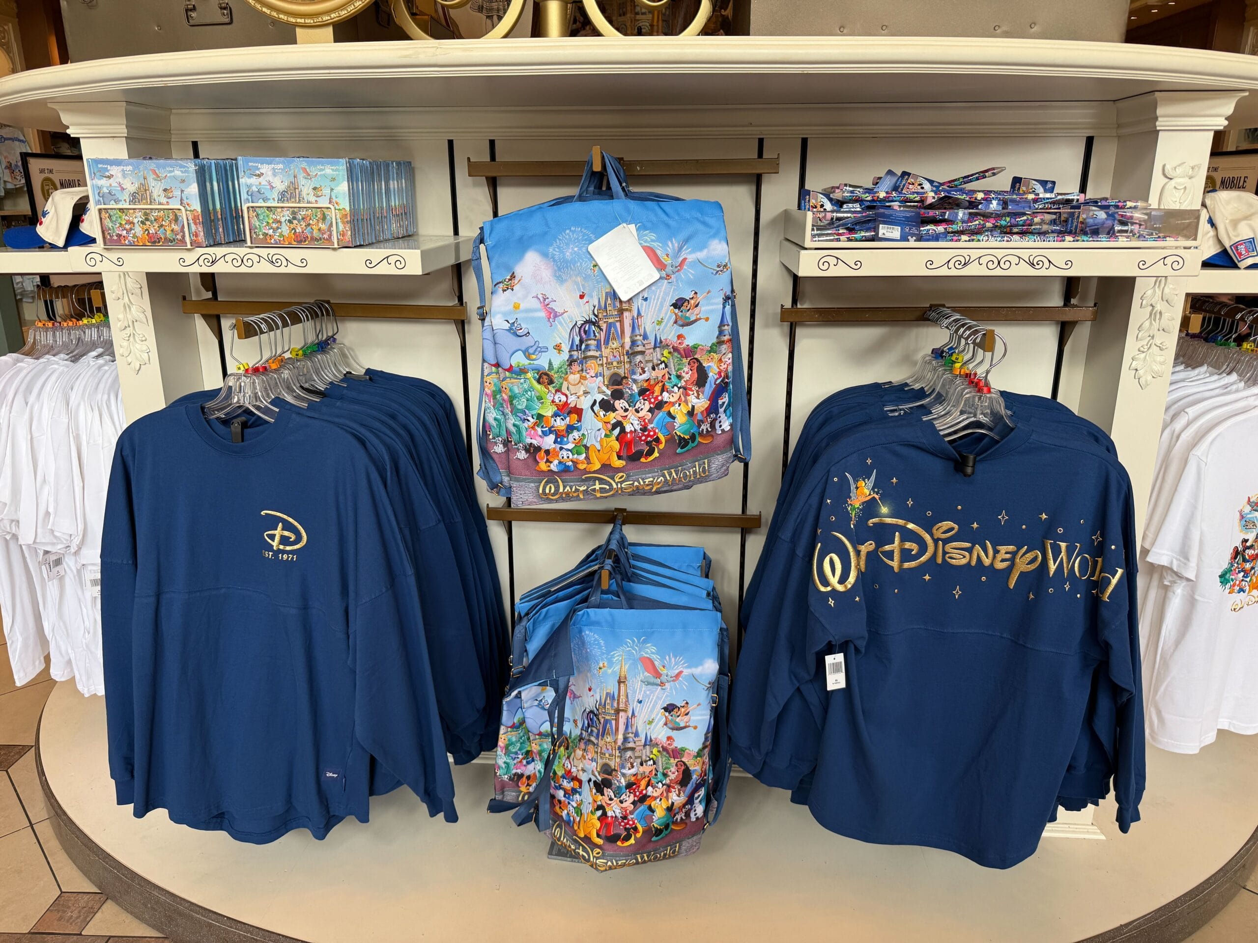 Another collection of apparel, home goods, and more have arrived at Walt Disney World. This collection, called Walt Disney World Storybook Collection, features beloved characters in an updated version of artwork that was used on merchandise many years ago. We spotted several of these items already, including the throw blanket, pressed penny book, photo frame, autograph book, pen, and reusable bags. We found the bulk of these items in the Emporium at Magic Kingdom....