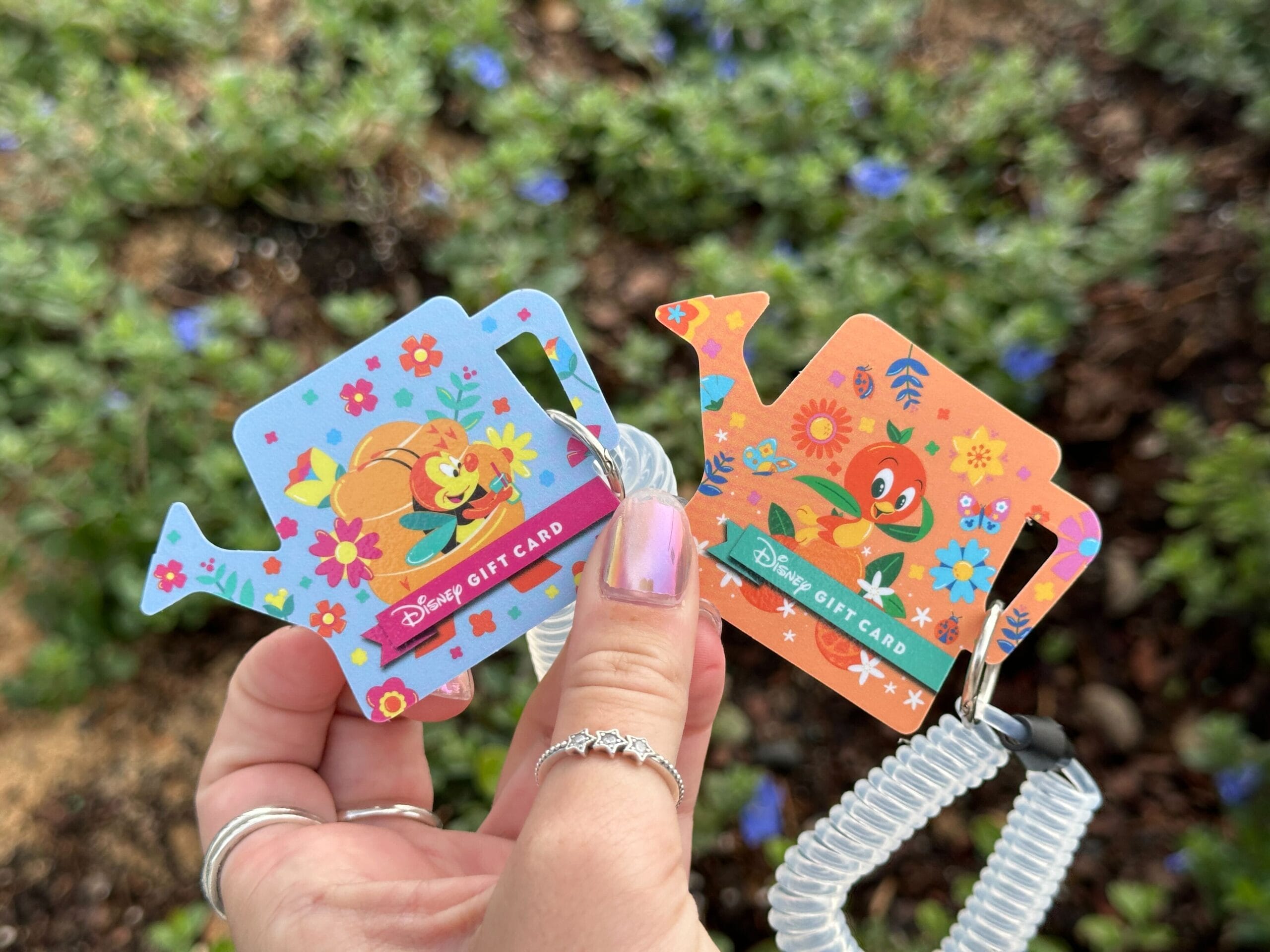 Souvenir Disney Gift Cards available at the 2026 EPCOT International Flower & Garden Festival feature Orange Bird and Spike the Bee. There’s usually only one festival gift card design, but guests can choose from two options at the 2026 festival (or purchase both). Souvenir Gift Card Both cards are shaped like watering cans. They work just like a regular Disney Gift Card, but are smaller with stretchy wristbands that makes them wearable for easy payment....