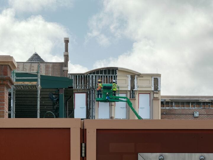 Facade Stripped From Muppets Courtyard Building as Monstropolis Construction Continues