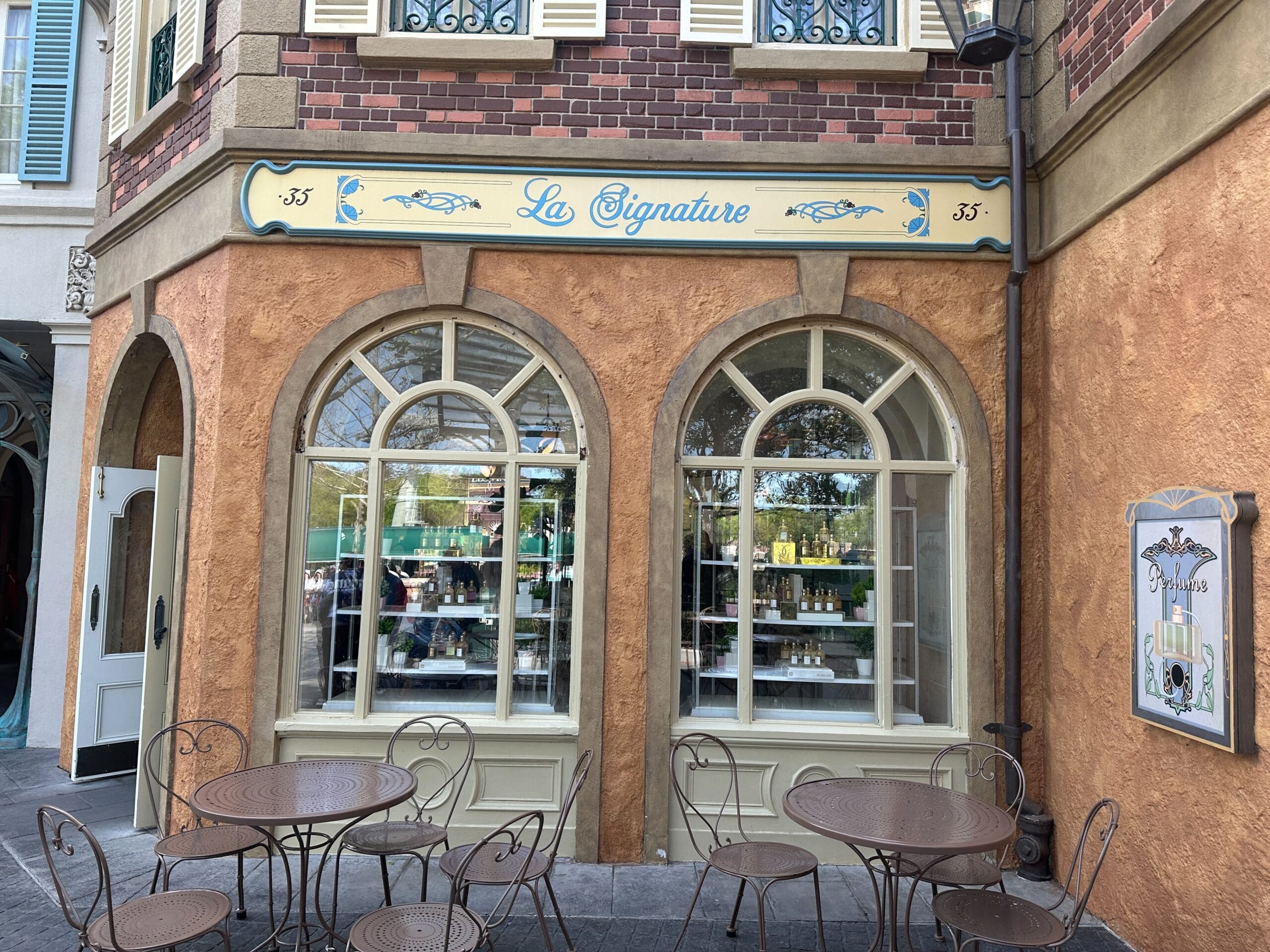 The exterior of the La Signature store in EPCOT’s France pavilion has significant damage around the windows and entrance. La Signature Damage We noticed most of the damage on these window frames below the “La Signature” sign. Though not clear from far away, the issues become clear up close. It looks like parts of the window frames have started rotting....