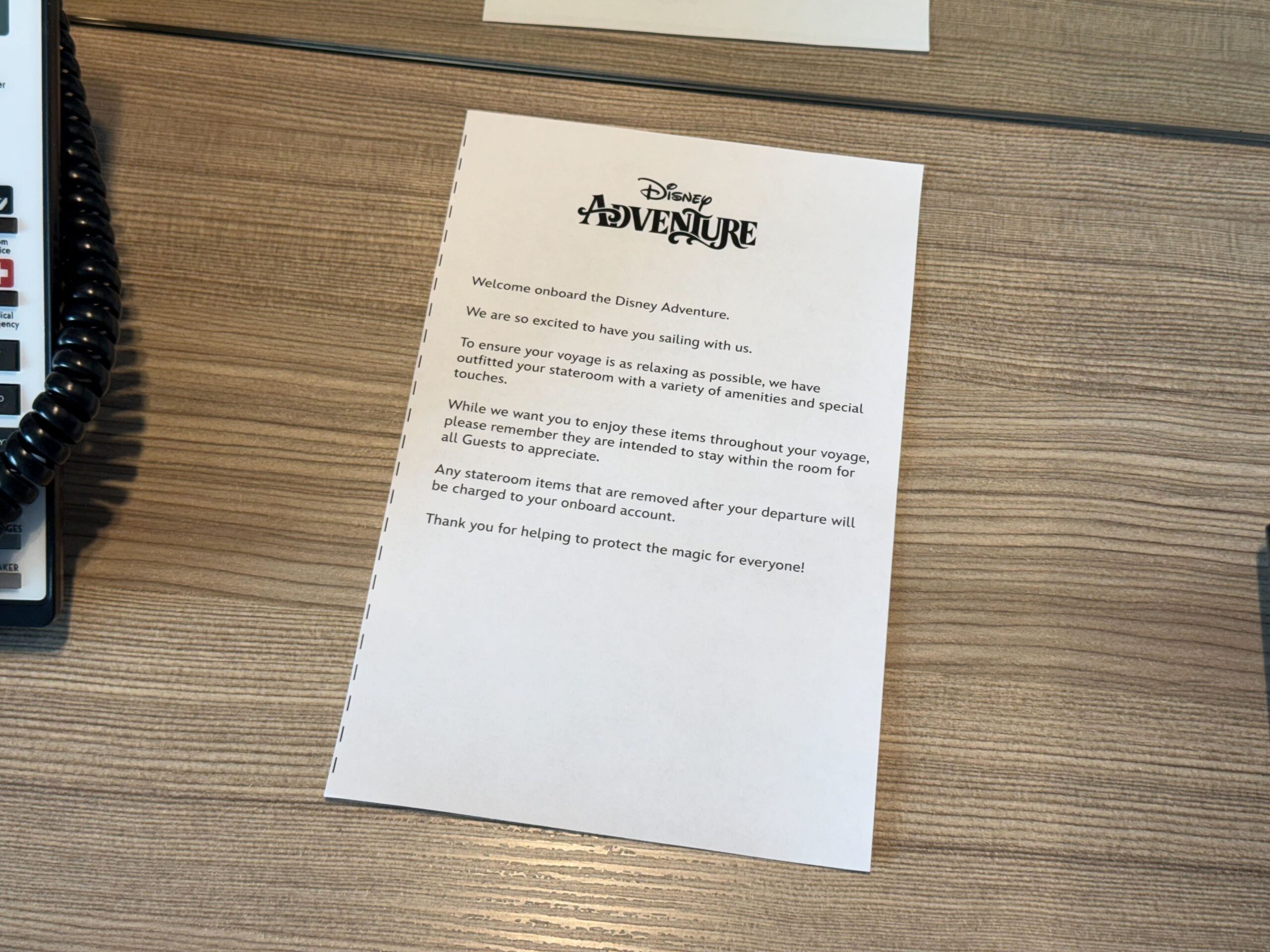 After just a few voyages, the Disney Adventure has put notices in staterooms reminding guests not to steal items. Apparently, guests have been taking stateroom amenities they aren’t supposed to take. Disney Adventure Asking Guests Not to Steal The printed paper sits on the stateroom’s desk when guests arrive. Here’s what it reads: Welcome onboard the Disney Adventure....
