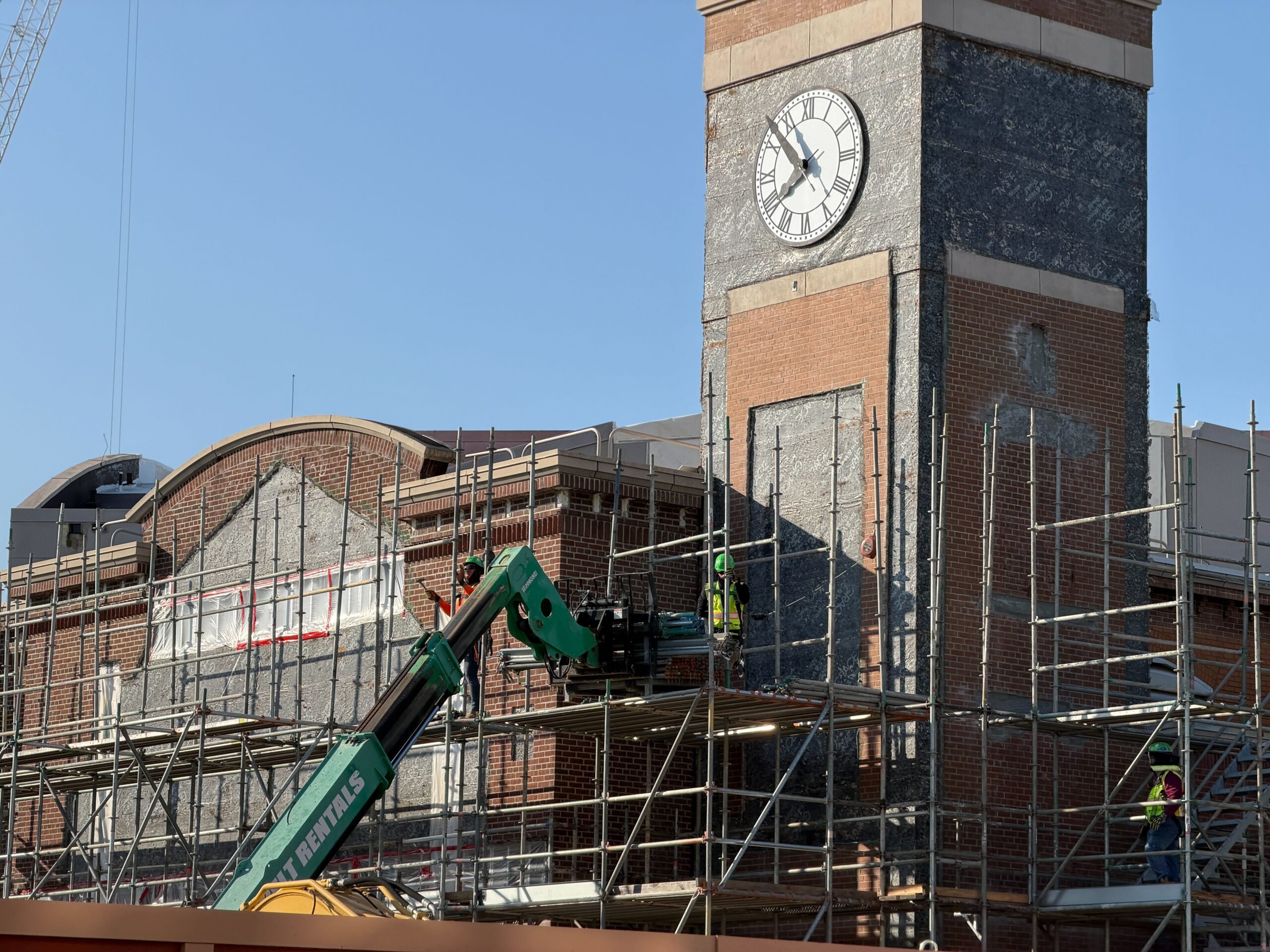 Crews are installing more scaffolding at the former MuppetVision 3D theater in Disney’s Hollywood Studios. The venue will be transformed with new decorations as part of the upcoming Monstropolis. Monstropolis Construction When we visited the park on Thursday, March 26, we saw crew members constructing scaffolding around the building’s clock tower. They had already installed more scaffolding above the theater’s main entrance, with poles now almost reaching as high as the building’s rooftop....