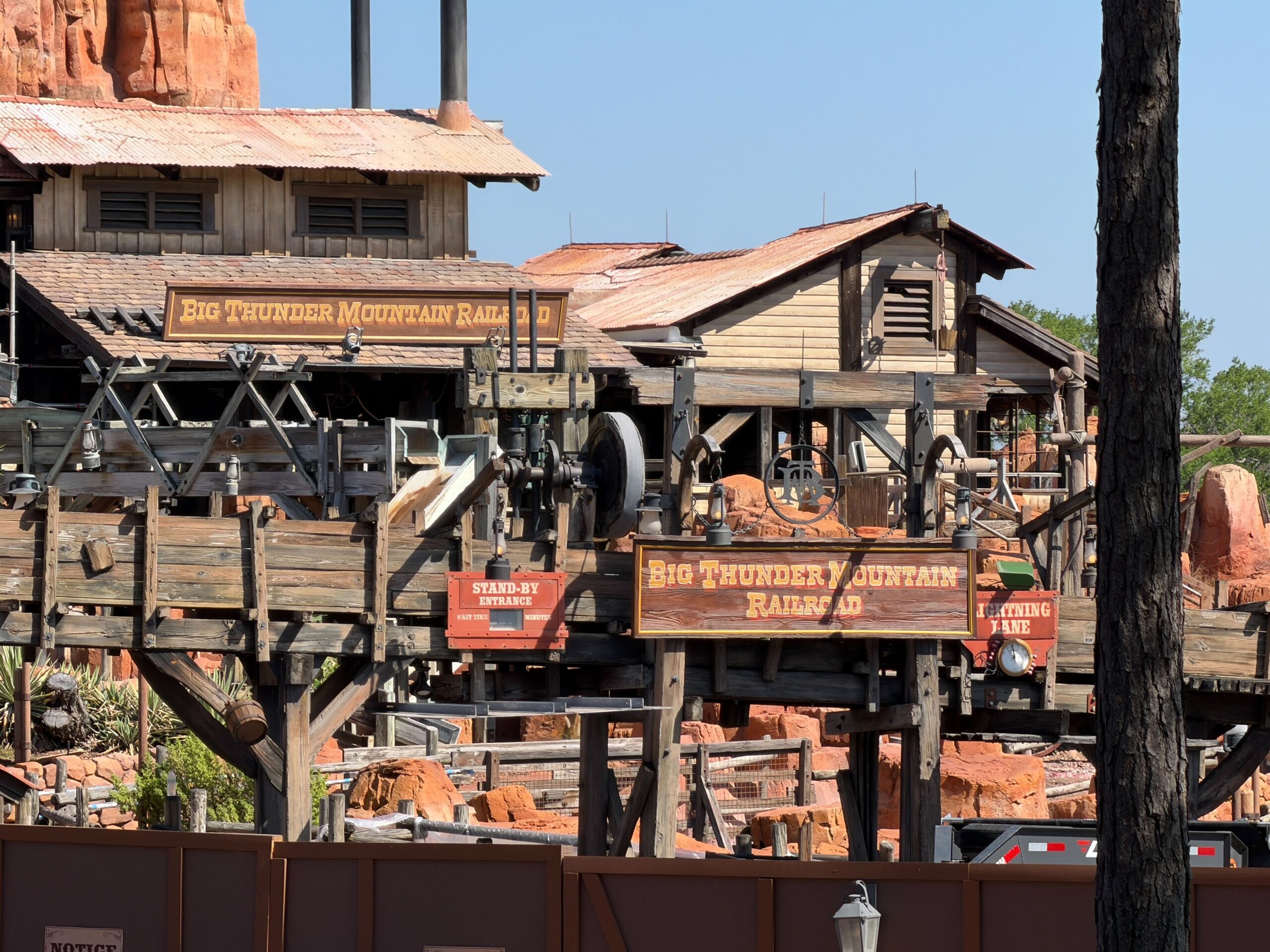 Refurbishment work continues apace on the wildest ride in the wilderness ahead of its planned reopening in May. Big Thunder Mountain Railroad Signage On a recent visit to Magic Kingdom, we stopped by Big Thunder Mountain in Frontierland for a closer look at progress on the ride’s refurbishment work before it reopens later this spring. In an update from last week, it appears that progress on the ride refurbishment is starting to wind down as scaffolding around the attraction has been removed. Elsewhere within the attraction’s footprint, we noticed what appears to be temporary walls erected around the old fencing that lines the outdoor queue portion for the coaster....