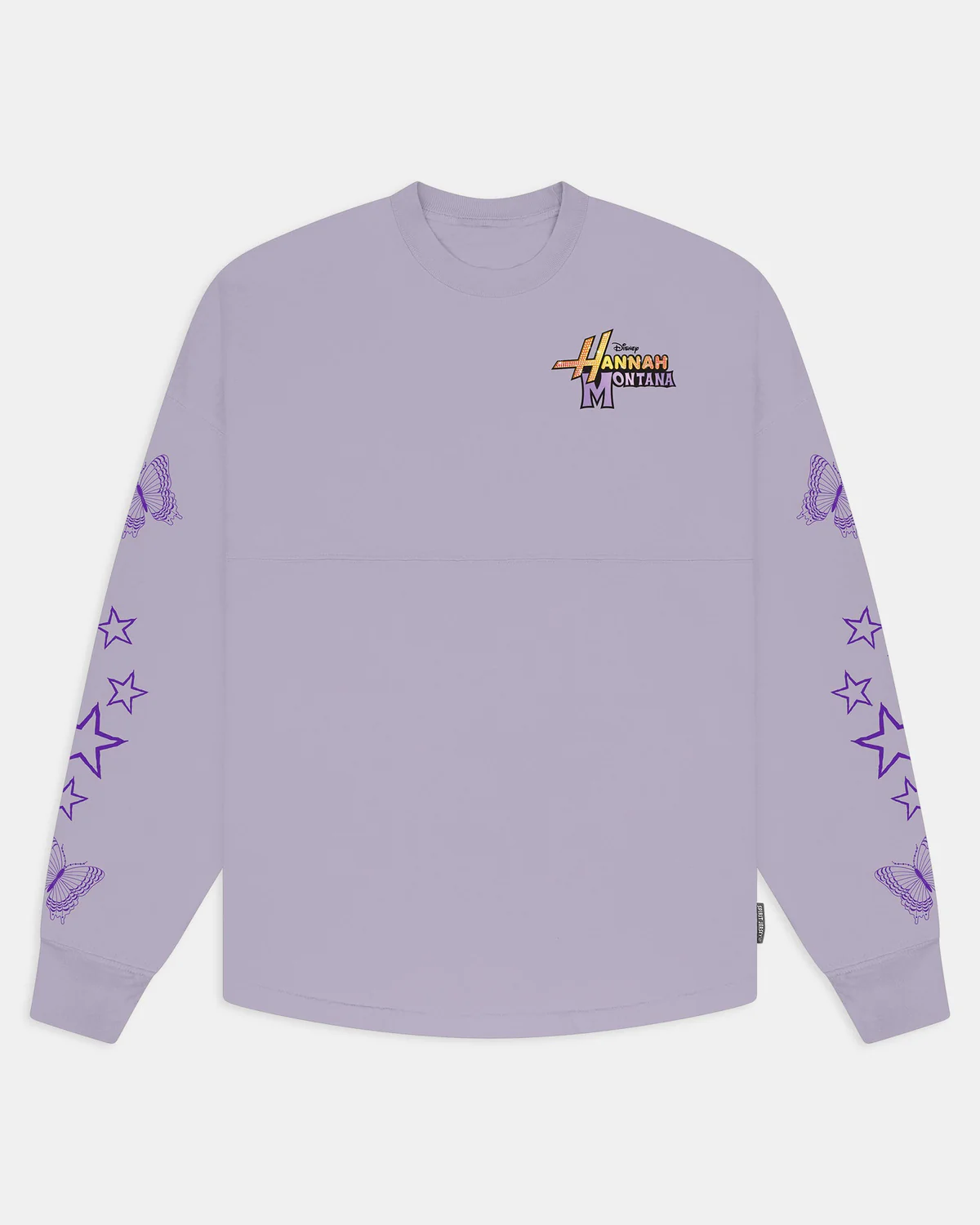 Celebrate the 20th anniversary of Hannah Montana with new apparel items now available online, while supplies last. Hannah Montana 20th Anniversary Spirit Jersey – $90 This light purple spirit jersey for adults has a small “Hannah Montana” logo on the front left of the chest, while the top back of the jersey has a larger version of the same logo, complete with Hannah Montana’s purple guitar. The jersey has an oversized fit with dropped shoulders. Stars and butterflies decorate the bottom of the cuffed sleeves....