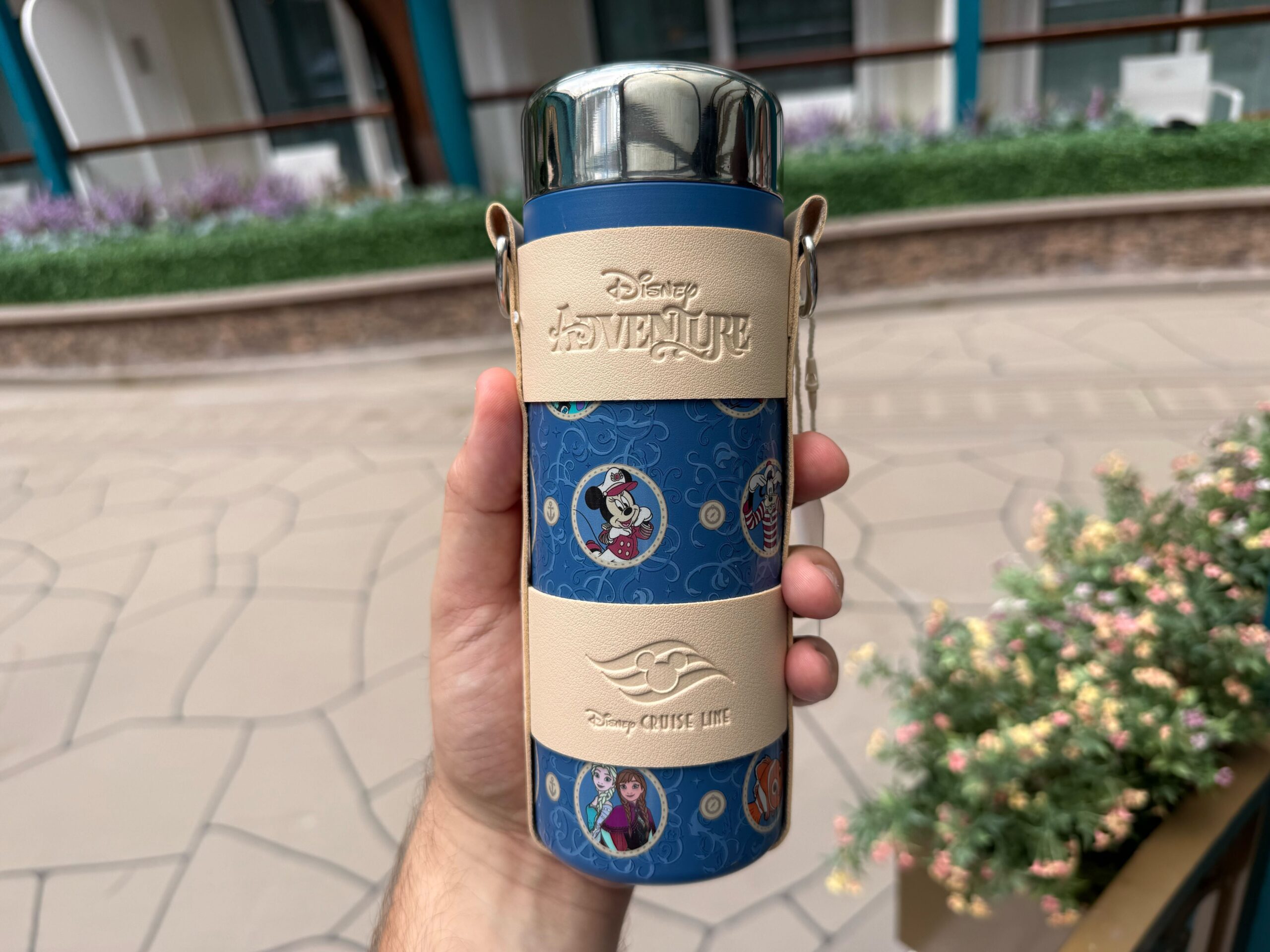 The new Disney Adventure cruise ship has some exclusive tumblers available. A stainless steel tumbler with a carrier is covered with cruise characters, while two D Lounge tumblers are bejeweled. Disney Adventure Tumbler with Carrier – $22 The carrier is a beige sling with a strap. The tumbler slides into two fabric loops featuring the Disney Adventure and Disney Cruise Line logos....