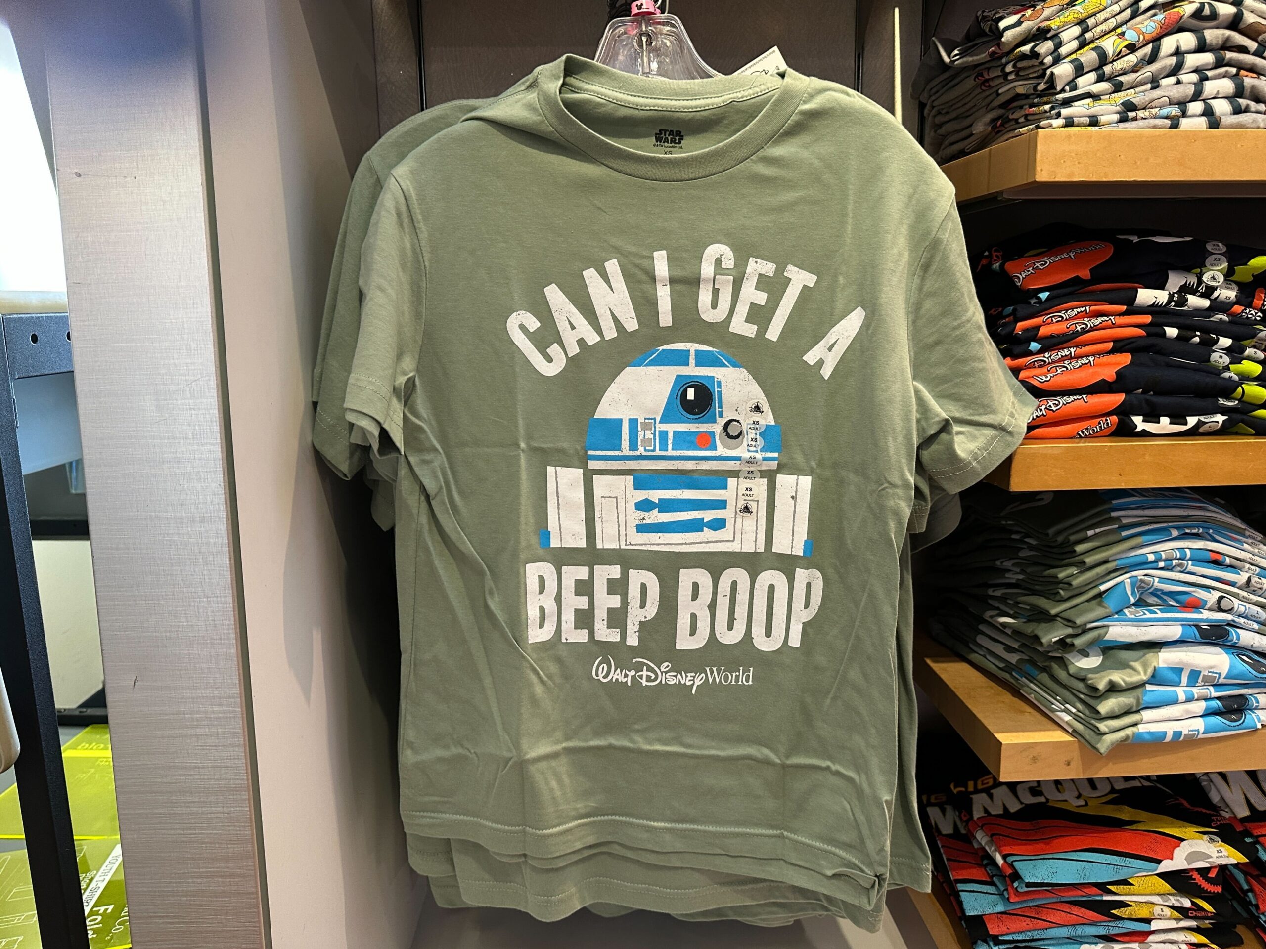 A new Star Wars t-shirt featuring R2-D2 plus two baseball jerseys inspired by the Empire and Rebel Alliance are available at Walt Disney World. R2-D2 T-Shirt – $32. 99 This is an army green short-sleeved T-shirt with R2-D2 pictured on the chest. “Can I Get A Beep Boop” is in big letters around him....