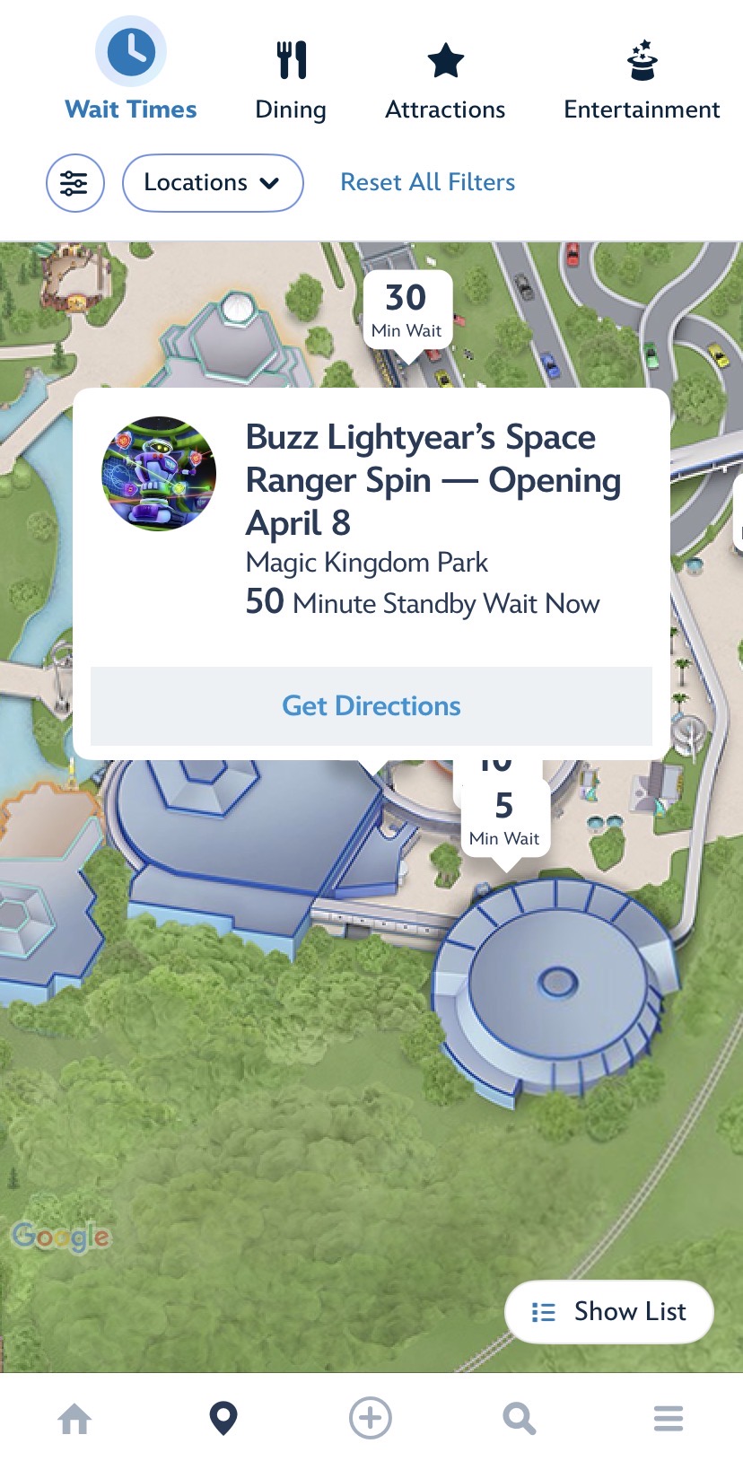 Amid a soft opening period, the Buzz Lightyear’s Space Ranger Spin wait time is now showing in Walt Disney World’s My Disney Experience app. Buzz Lightyear’s Space Ranger Spin Wait Time After a few weeks of cast member previews, the reimagined ride soft opened to guests earlier this week. As the app still states, it’s not set to officially reopen until April 8. This means it could be closed for full days during the next week if issues are found....
