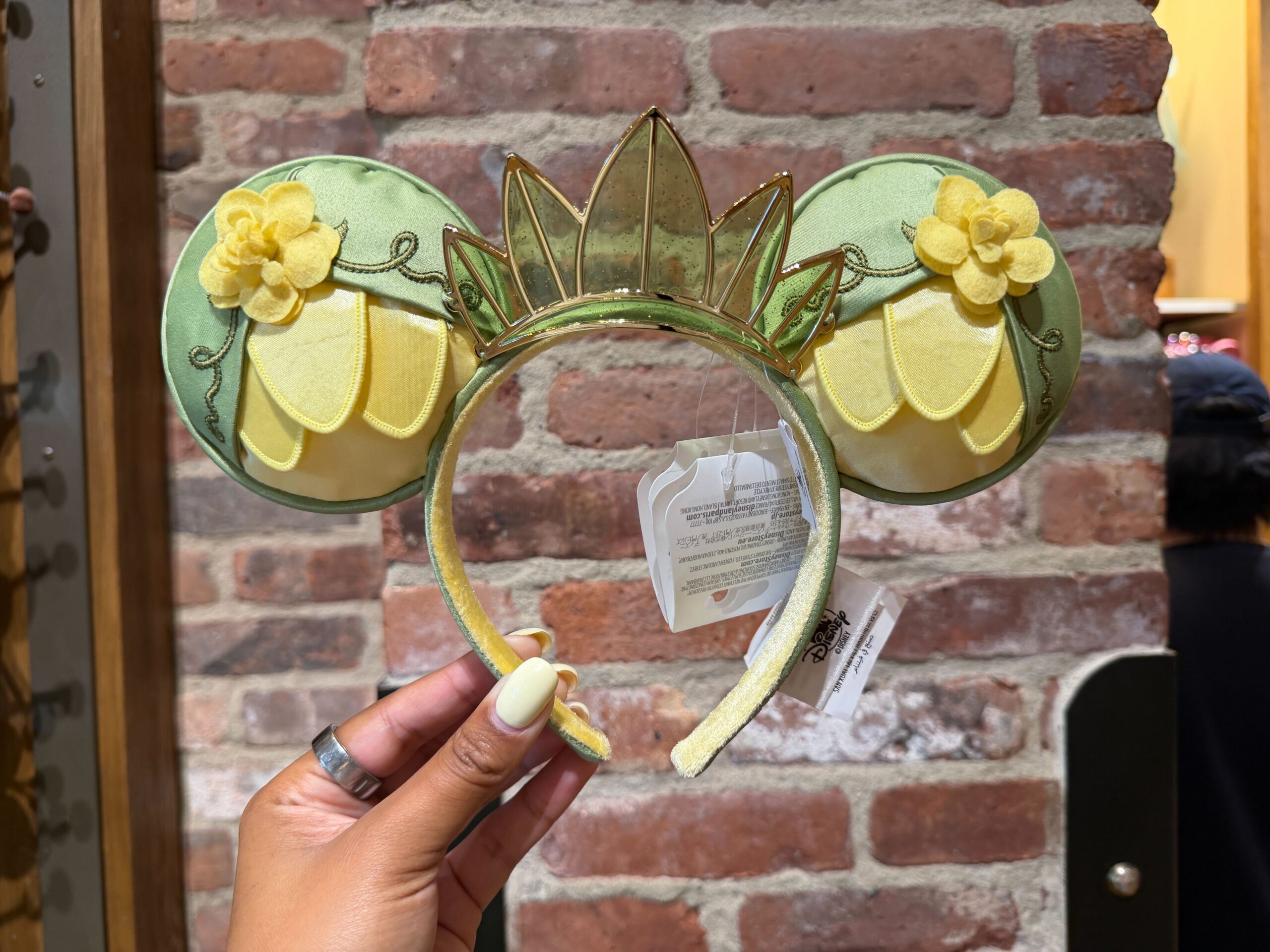 Downtown Disney has a new ear headband themed to Princess Tiana’s lily pad dress in The Princess and the Frog, now available for purchase while supplies last. Princess and the Frog Tiana Ear Headband – $36. 99 The front of the ears is designed to look like Tiana’s lily pad dress, where the tops of the ears are Tiana’s green outer skirts, while the bottoms of the ears are Tiana’s yellow inner skirts. On each ear are yellow 3D felt flowers attached to embroidered vines....