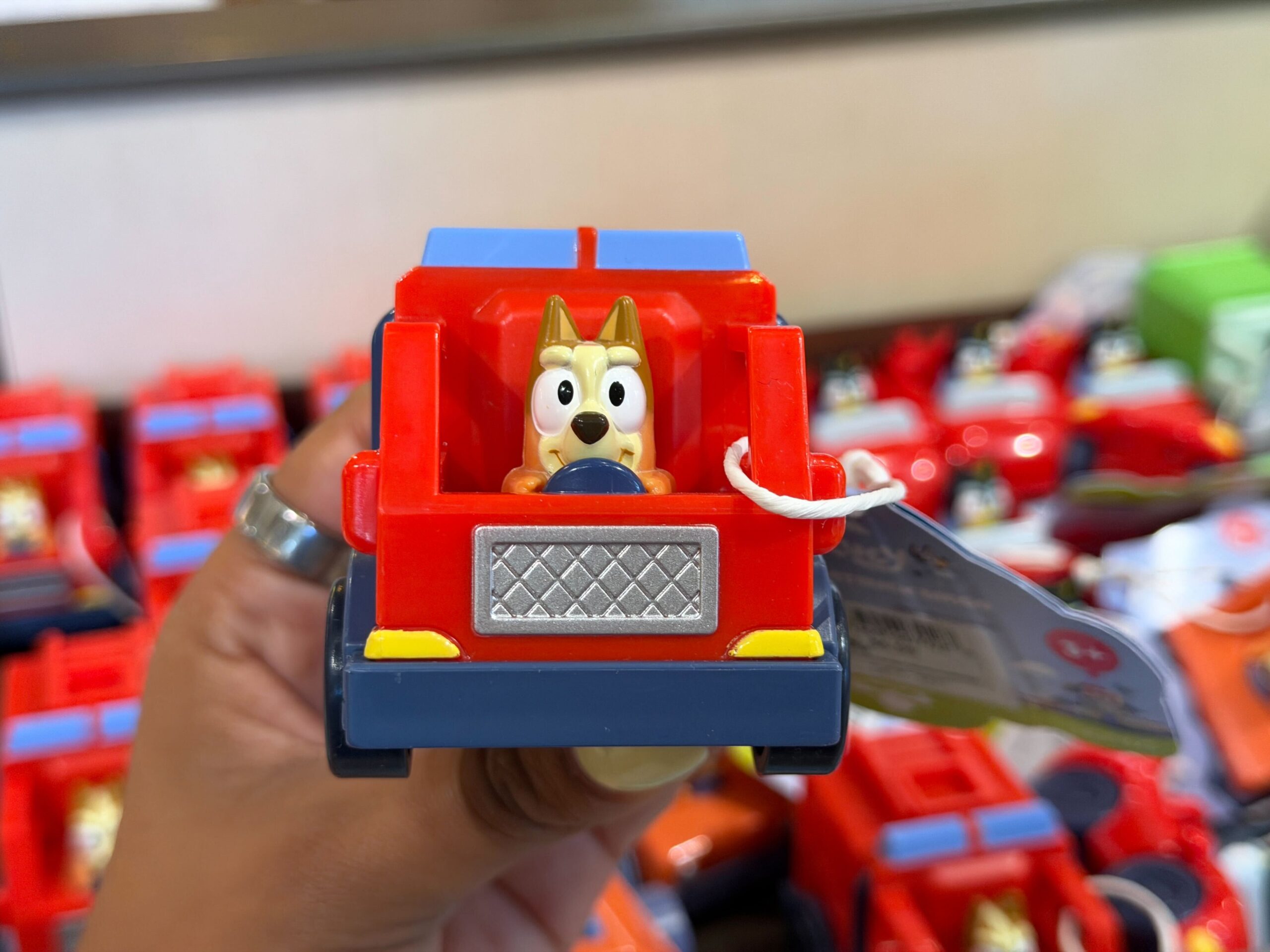 A series of toy cars driven by Bluey characters has arrived at Disneyland Resort. We found these toys in World of Disney at Downtown Disney District. Firetruck Bingo – $6. 99 Bluey’s younger sister Bingo is depicted driving a red firetruck....