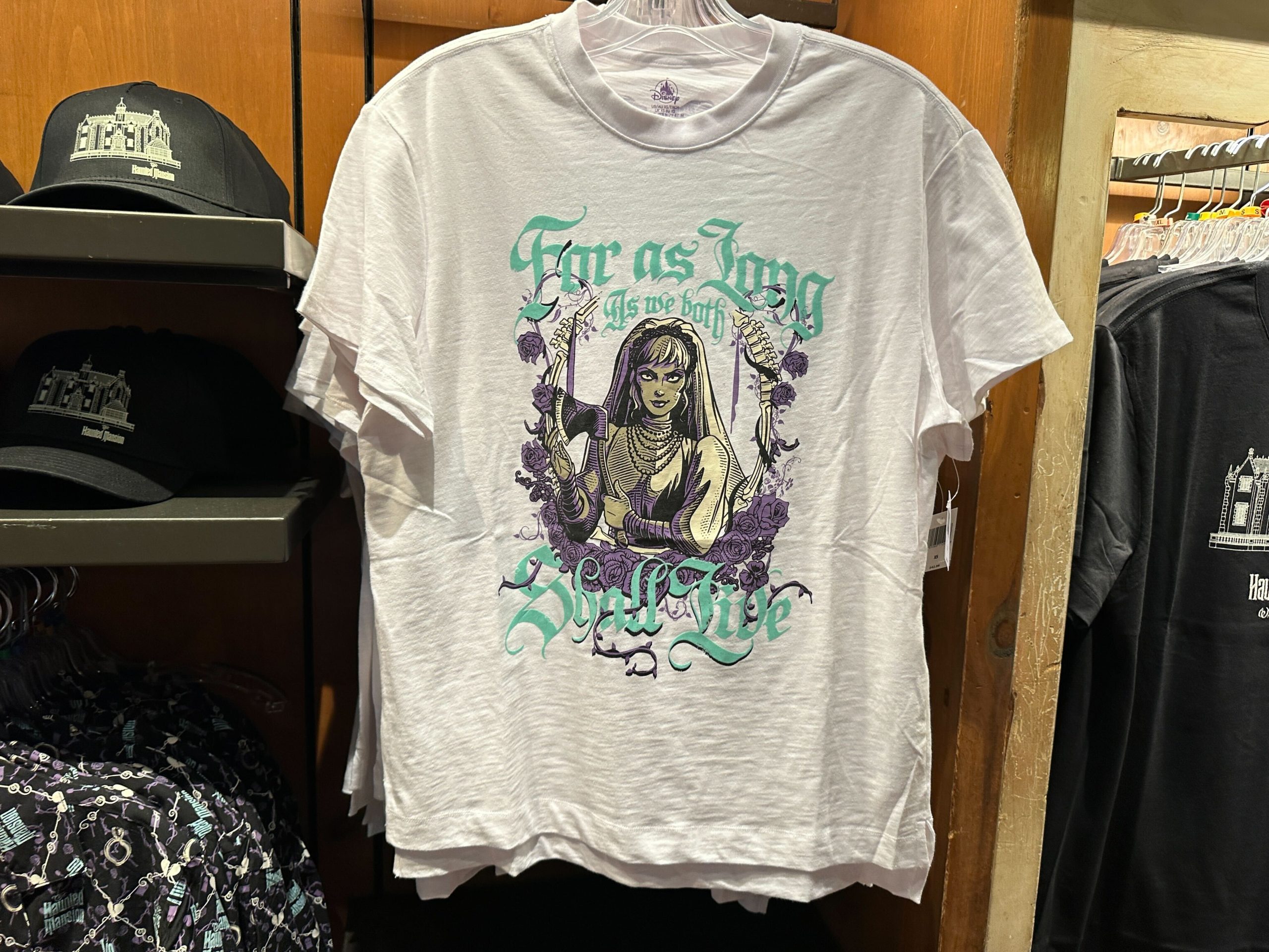 Two new shirts spotlighting The Haunted Mansion attraction are available at Walt Disney World Resort. Both are available in adult sizes. Adult Bride T-Shirt – $42. 99 On the front of this white t-shirt is Constance Hatchaway, the bride of The Haunted Mansion....