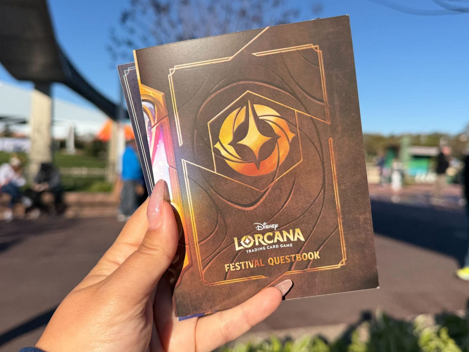 Take a look inside the 2026 EPCOT International Festival of the Arts Disney Lorcana Questbook, which serves as a guide to the Lorcana offerings around the park. 2026 EPCOT International Festival of the Arts Lorcana Questbook In order to participate in the Disney Lorcana Collection Quest and/or the Ink & Find Scavenger Hunt, you’ll need to pick up a Questbook. You can pick up your Festival Questbook and a complimentary booster pack of cards at this station on the bridge from World Celebration to World Showcase. The Quest Distribution station has a large display featuring artwork from “Galactic Council Chamber” and “Forbidden Mountain....