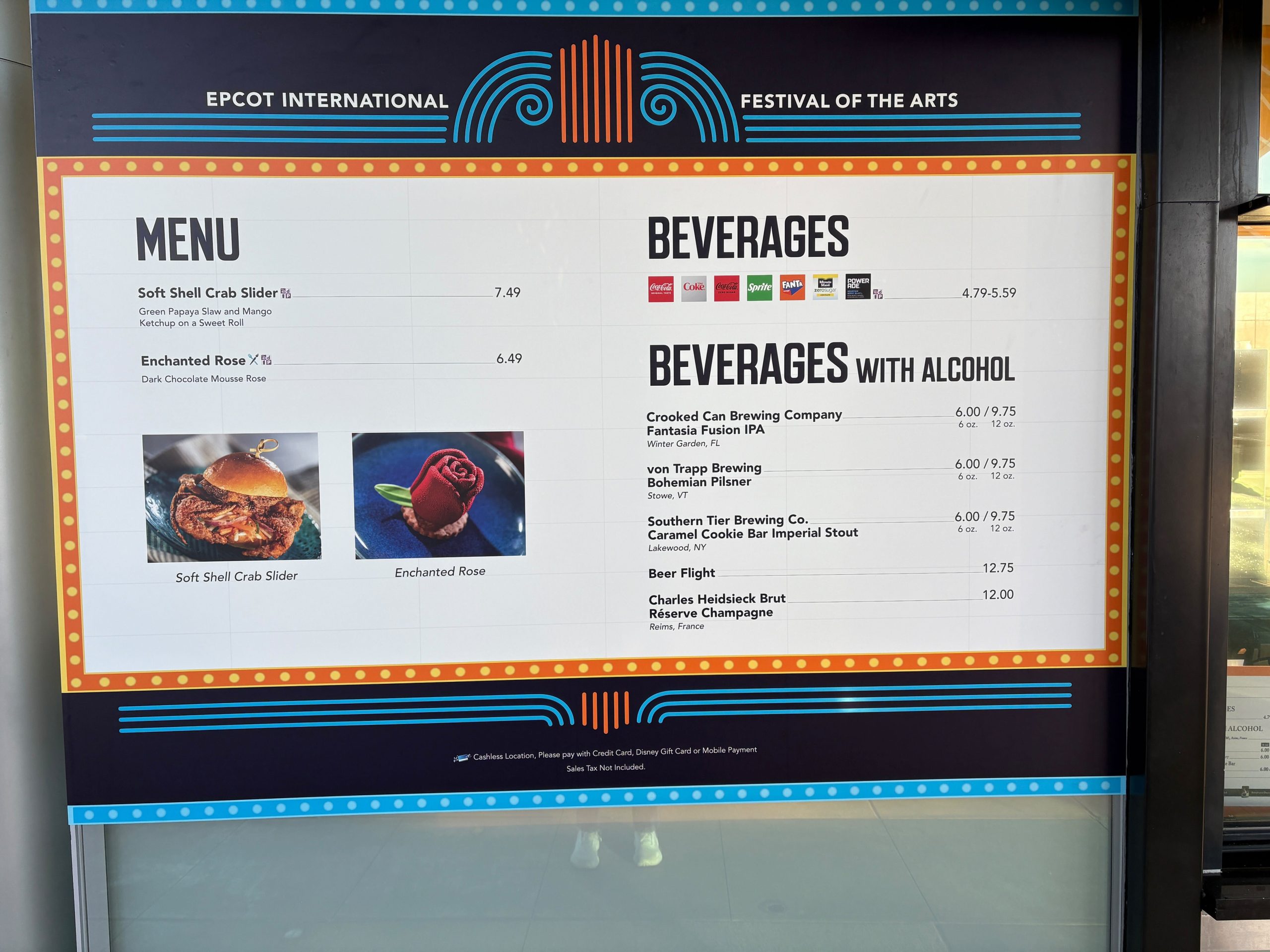 The 2026 EPCOT International Festival of the Arts has begun! We sipped and snacked our way around the park, trying all of the food and specialty beverages. In this review, you’ll find our thoughts on each NEW item available at the festival. 2026 Festival of the Arts Food & Beverage ReviewsWorld CelebrationOpening BitesConnections EateryThe Deconstructed DishFigment’s Inspiration Station at The OdysseyWorld ShowcaseEl Artista HambrientoKringla Bakeri Og KafeThe Painted PandaL’Arte di MangiareThe Artist’s TableFunnel CakeGoshikiVibrante & Vívido: Encanto CocinaL’Art de la Cuisine FrançaiseGourmet LandscapesWorld DiscoveryFictional VictualsDeco DelightsPop EatsSwirled ShowcaseWorld NatureSunshine SeasonsJoffrey’s Coffee & Tea CompanyEPCOT International Festival of the Arts World Celebration Opening Bites Location: CommuniCore Plaza Soft Shell Crab Slider: Green papaya slaw and mango ketchup on a sweet roll – $7....