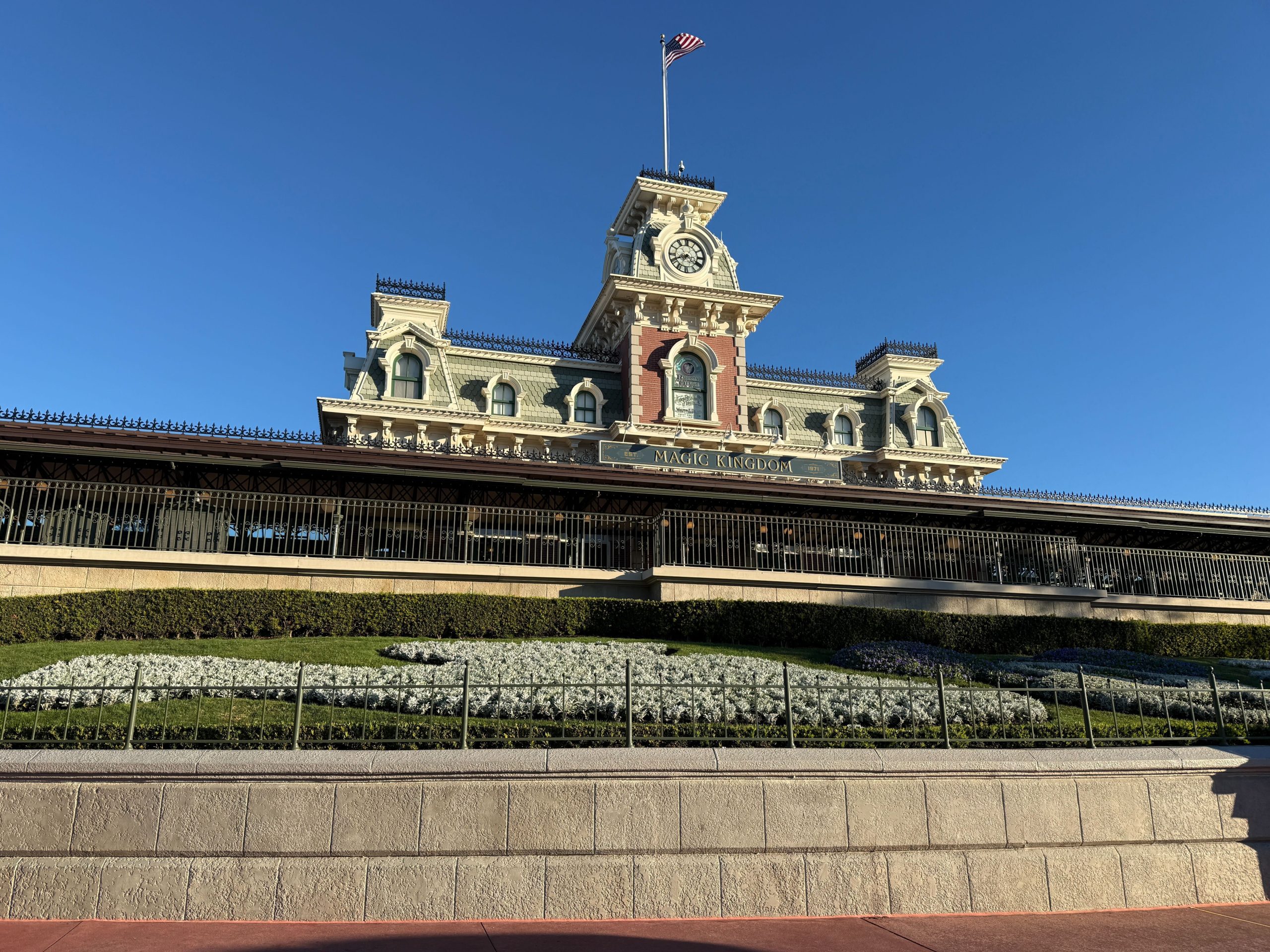 We headed to Magic Kingdom on Monday, January 19 and found all the holiday décor has been taken down from the park. It stayed up longer than usual due to filming for a Hallmark movie. Christmas Décor Removed Upon entering Magic Kingdom, the train station no longer has the garland hanging from the rails, and the flower bed is no longer red and green. This area of the Magic Kingdom entrance is also missing the Mickey and Minnie holiday topiaries....